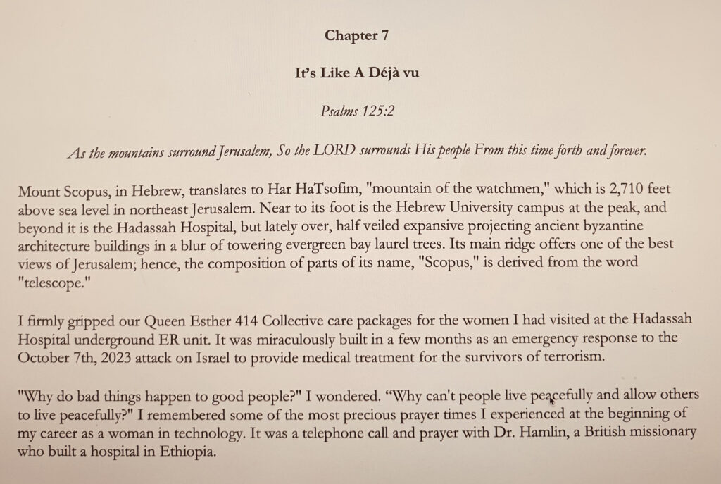 My upcoming book reminded me that my point of inflection was inspired by a successful calling to serve at a hospital when I served as a woman in tech at the Hadassah ER Underground Hospital (enjoy, be blessed, and join our mailing list to remain in touch and receive daily encouraging words from us and updates)